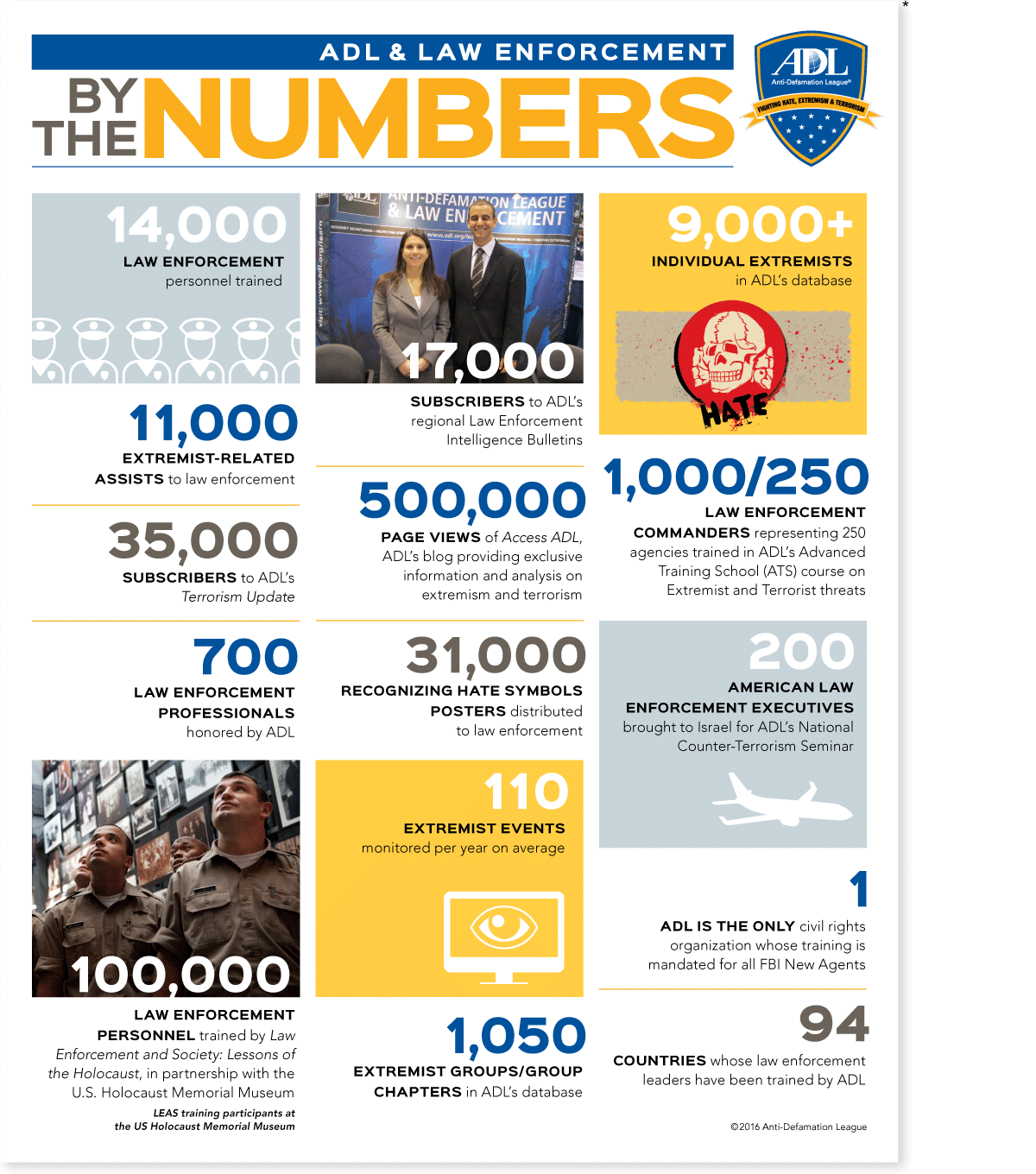 Working with an internal client, the creative director of this Manhattan-based civil rights advocacy non-profit knew that I could create a visually compelling one-sheet design illustrating a series of relevant numbers using a balanced mixture of photos with info-graphic elements. Relying on a color-palette to assist in unifying the design, I chose the swatch-base from an accompanying badge graphic used frequently within the agency’s law enforcement educational program's collateral and marketing materials. The agency’s brand-stipulated use of the Avenir family along with some inherited graphics were then composed and combined with icons I created for the piece, and treated with a design and alignment consistency throughout.*The bottom version indicates how it appeared before the client decided to rearrange some of the features, and to highlight certain statistics that weren't originally.